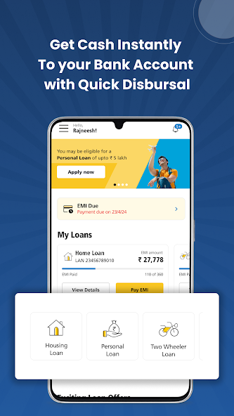 Once approved, the loan amount is transferred directly to your bank account.